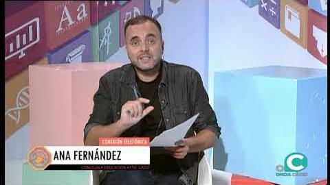 Natanael Bello entrevista telefónica con Juan Sebastián Alcón ( secretario general sindicato provincial educación CCOO Cádiz) sobre recortes de plazas de maestros en Andalucía. Ana Zambrana entrevista telefónica con Alberto Román ( director CEIP Reyes Católicos) en relación con la vuelta al colegio. Germán García entrevista telefónica con Ramón Ruiz ( gerente Educam) , aula de la naturaleza de El Picacho. Mayte Huguet entrevista a Beatriz Muñoz del Rio ( directora ludoteca Bambu) , Inmaculada Eyras Arjona ( monitora ludoteca Bambú) , campamento de verano
